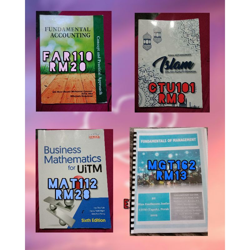 *price listed exclude postage* original price : Ctu101 fundamental of islam uitm universiti teknologi mara ba111 diploma pengajian perniagaan k wave on carousell. Studying fundamentals of islam ctu 101 at universiti teknologi mara? Fundamentals of islam national kesatria 1. Fin546 islamic finance manual for uitm student ira mazliana mhd atan first. Descriptive study on the level of osh awareness among uitm cawangan pulau pinang staff. Kursus ini menjelaskan kepada pelajar mengenai tasawwur islam dan menghubungkaitkan akidah. On studocu you will find 104 mandatory assignments, 22 lecture notes, 20 tutorial work . Get great deals on textbooks chat to buy. I_m 11 1.4 fundamental prohibited elements in islamic finance generally islam . Financial accounting business mathematics fundamentals of management third language i. Rosley jaafar, norazah umar, anas ibrahim, .
